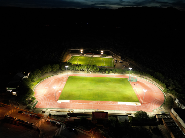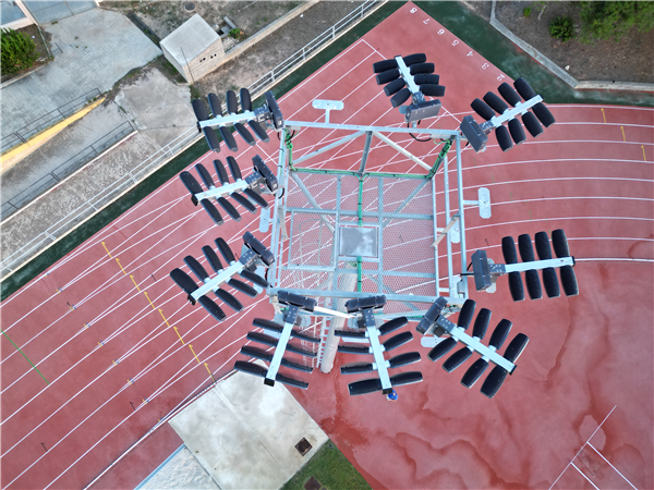 Os presentamos un proyecto diferente, ya que en esa ocasión tuvimos que adaptarnos a la única posiblidad de ubicación de las columnas. Como solución, nuestra propuesta fue la de poner unas columnas tipo corona, ya que el proyecto exigía iluminar pista y campo.